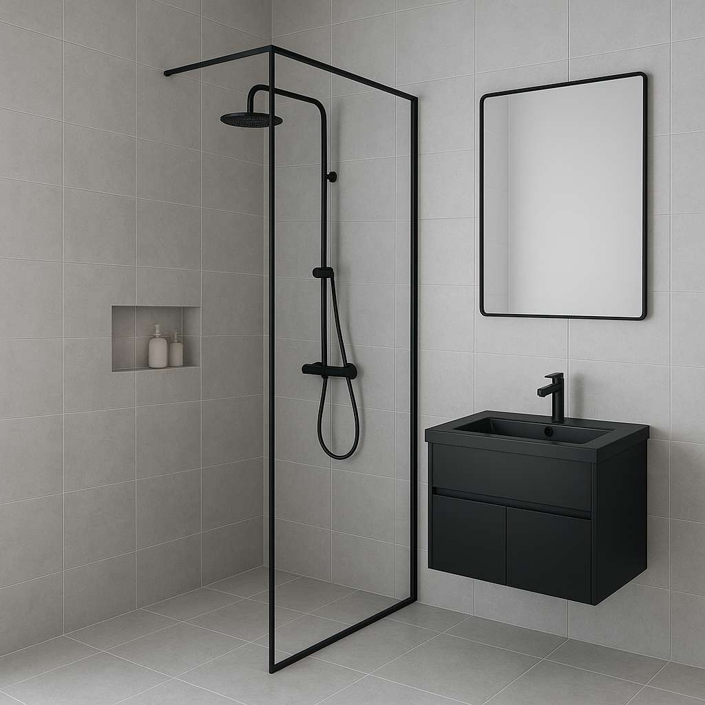 Add bold, architectural style to your bathroom with the Astra Black Border Walk-In Shower Screen. Featuring a sleek frameless design and a black border print, this screen merges modern industrial design with functional elegance.