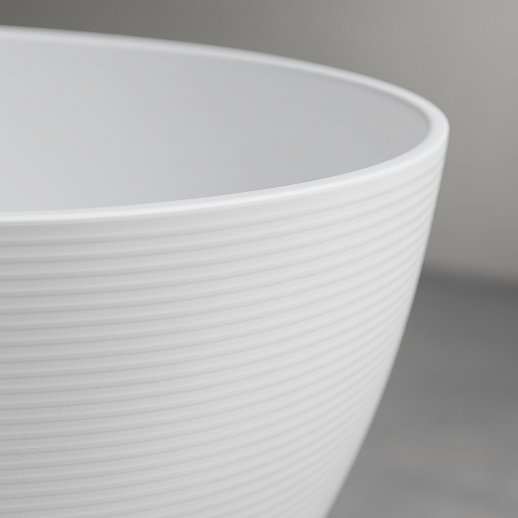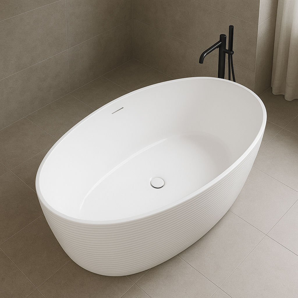 The Ella Gloss White Freestanding Bath brings refined elegance and sculpted beauty into the heart of your bathroom. Its ribbed White exterior paired with a smooth white interior creates a timeless statement that blends modern craftsmanship with luxurious comfort. Designed for deep, immersive soaking, the Ella bath complements both minimalist and bold interiors with its balanced oval shape and sleek symmetry.
