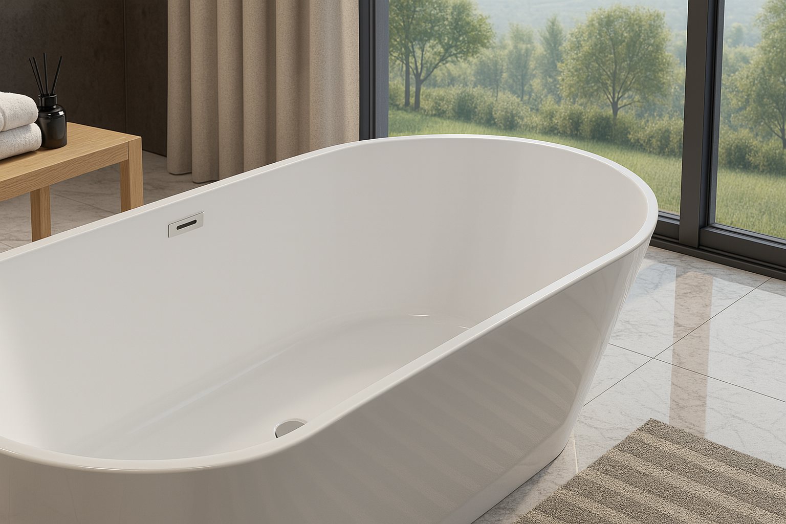 Design: Elegant freestanding form with soft curves and modern proportions