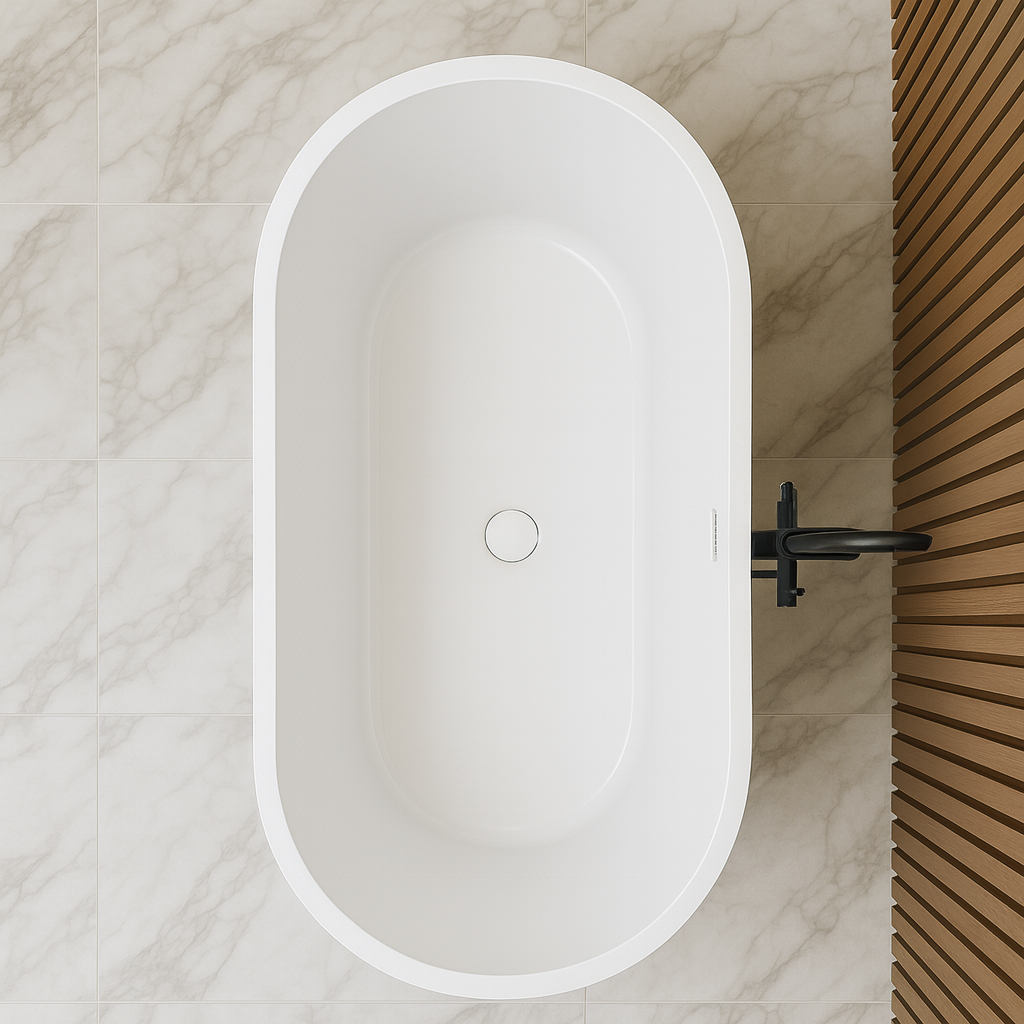 Experience pure elegance with the Monet White Freestanding Bath, a refined centrepiece designed for modern luxury bathrooms. The sophisticated ribbed-textured exterior in gloss white blends seamlessly with the smooth white interior, creating a calming yet striking visual statement. Crafted for both comfort and design impact, its spacious oval form offers deep soaking and full-body relaxation.